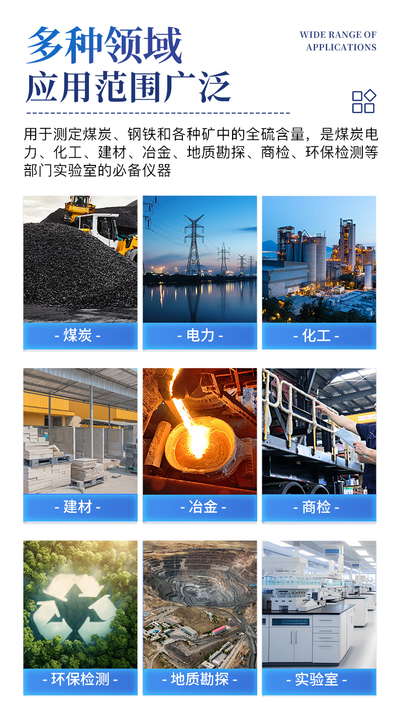 本公司生產的系列微機全自動定硫儀,主要用于測定煤炭、鋼鐵和各種礦中的全硫含量,是煤炭、電力、化工、建材、冶金、地質勘探、商檢、環(huán)保檢測等部門實驗室的優(yōu)選必備儀器。