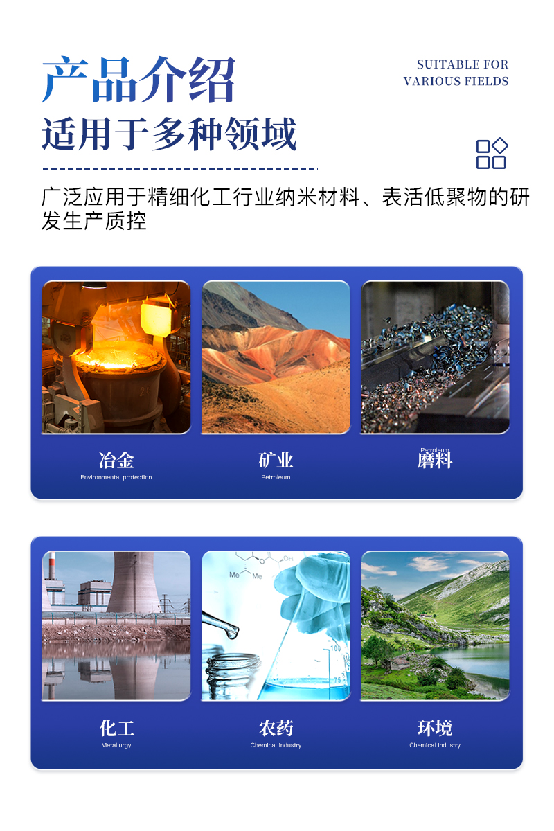 激光粒度分析儀同時(shí)具有Zeta電位及納米粒徑的分析測(cè)試功能,適用于多種不同的納米乳液、懸浮液膠體等的粒度和表面電位測(cè)量,能廣泛應(yīng)用于精細(xì)化工行業(yè)納米材料、表活、低聚物等的研發(fā)和生產(chǎn)質(zhì)控,同時(shí)也是油墨,醫(yī)藥制劑等行業(yè)產(chǎn)品研發(fā)及質(zhì)控檢測(cè)儀器。