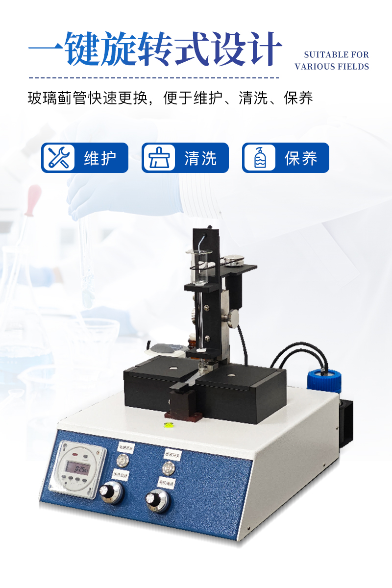 (7)一鍵旋轉(zhuǎn)式設(shè)計,玻璃薊管快速更換,便于維護、清洗、保養(yǎng);