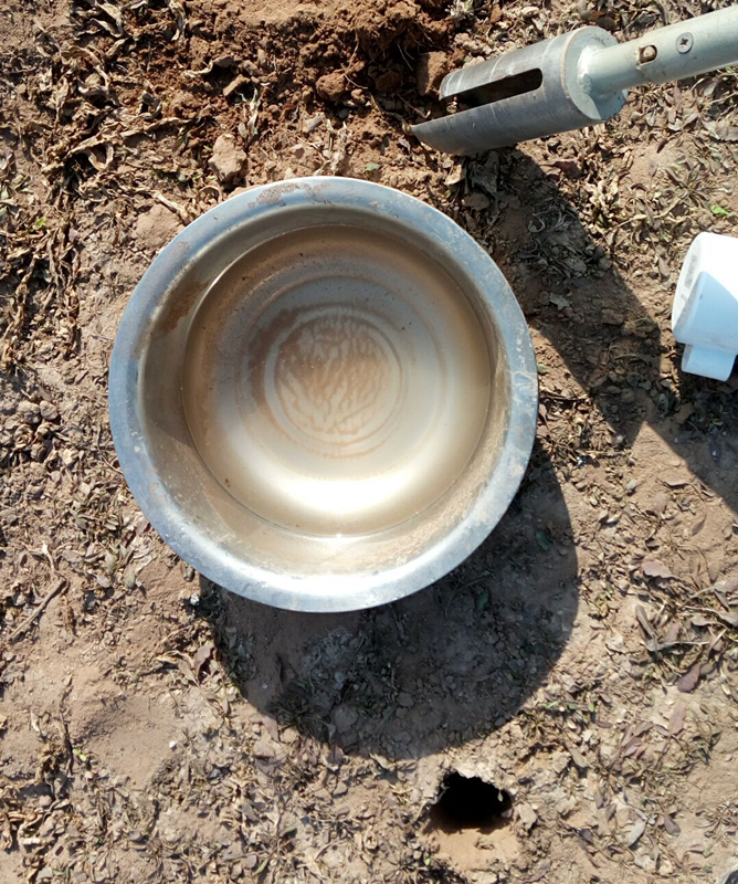 砂土安裝與壤土標(biāo)準(zhǔn)安裝步驟無(wú)異,需要注意的是需準(zhǔn)備足量的水,不少于5L;在灌漿之前,先把水倒入孔洞中,淋濕整個(gè)洞壁,直到孔洞底部有多余的水出現(xiàn)為止。然后按照步驟,將泥漿慢慢倒入孔洞中,大概大概到孔洞1/2的位置。其余安裝步驟參照壤土的安裝即可。